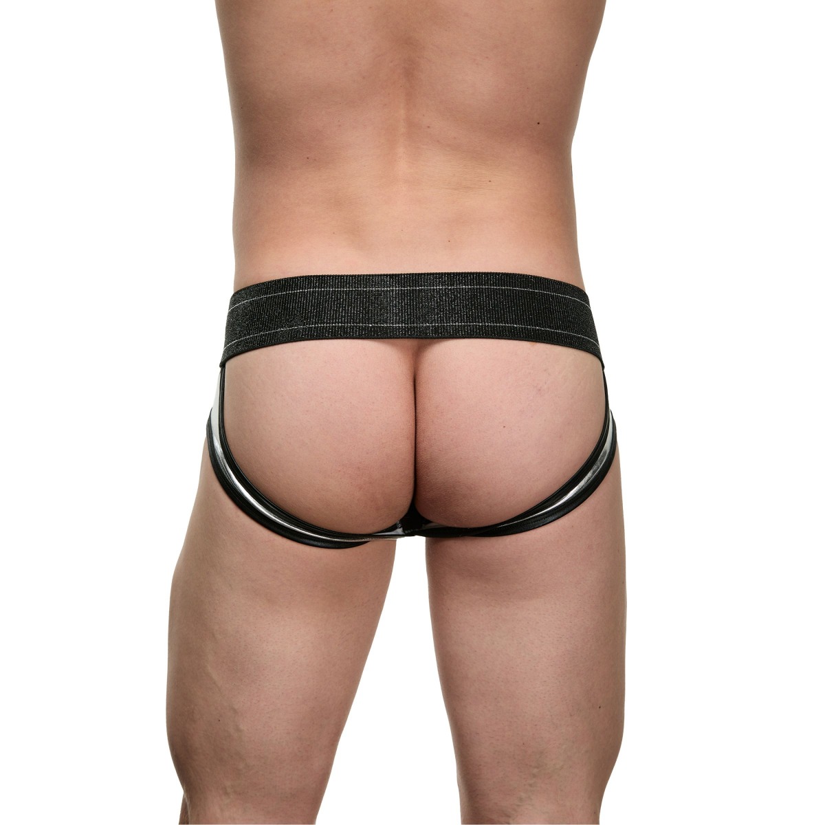 Мужские блестящие серебристо-черные трусы-джоки.