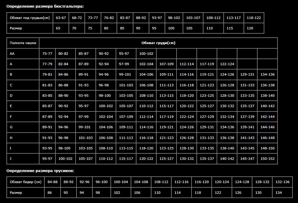 - Размеры белья