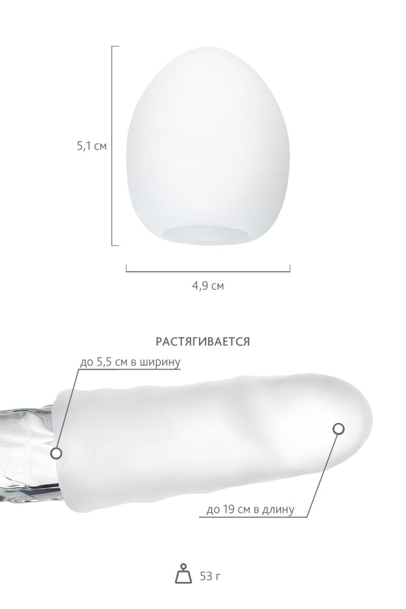 Это яичко из эластичного материала - не что иное, как мастурбатор нового поколения. В него не нужно проникать, его следует натягивать на член! Те же привычные движения, но совершенно другая техника. Снимите упаковку-скорлупку, нанесите на отверстие небольшое количество смазки и проникнете в узенький тоннель. Рельефные стеночки, испещрённые молниями, заставят вас забыть обо всём на свете и сосредоточиться на ярких ощущениях! Размер - 5,3 х 5,3 х 7 см.